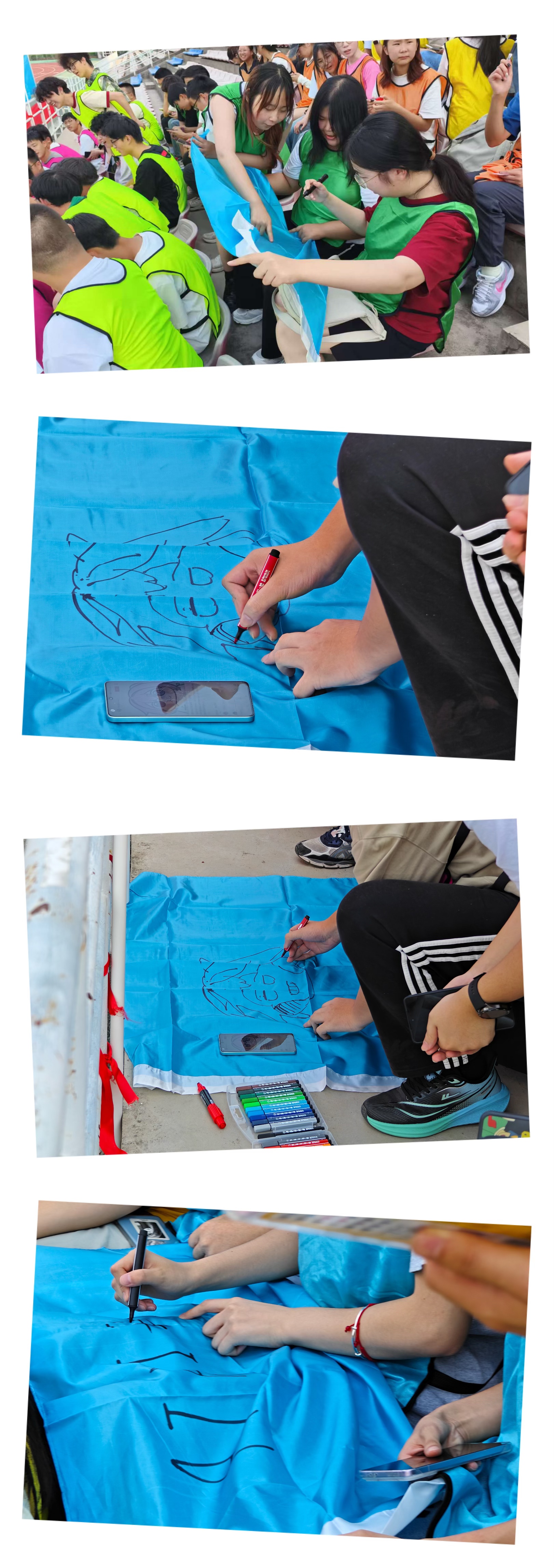“三人两足·珠行万里”项目里,大家喊着口号协同绕过障碍,用球拍接力运输高尔夫球,展现拼搏精神。